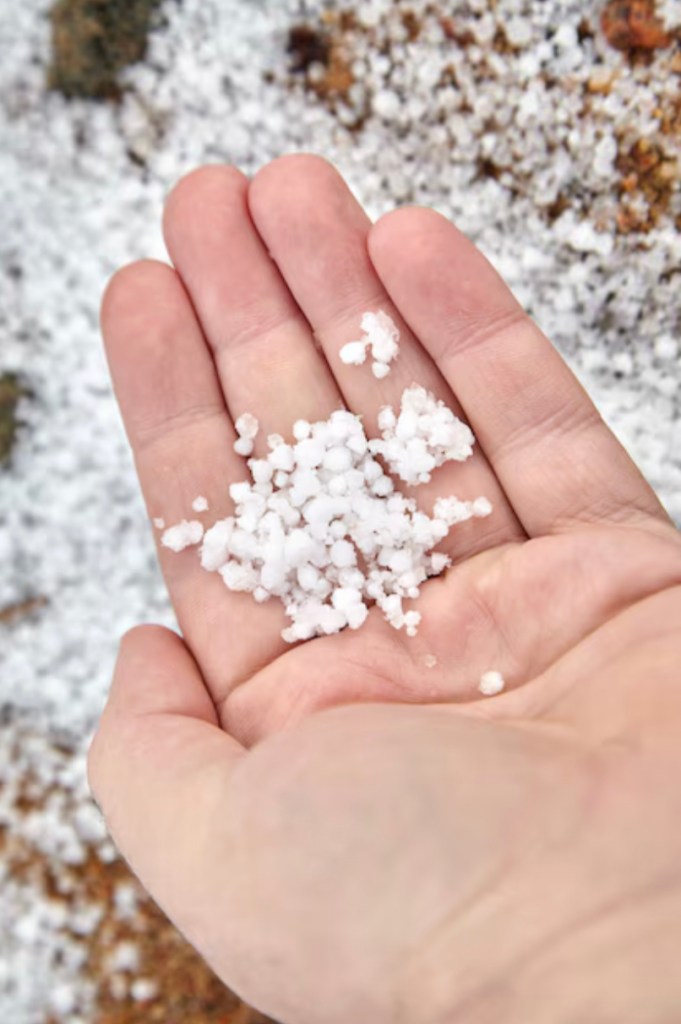 There is evidently a whole other type of precipitation that I was not even vaguely aware of. Something between snow and hail. Something which takes a unique combination of very cold and very odd environmental factors to create — called, yes, graupel (pronounced gra-pelle). It comes down looking like hail in neat little round pebble shapes; but, unlike hail, when you squeeze it, it is soft and pillowy like a teeny tiny marshmallow.