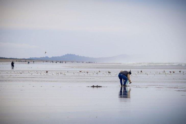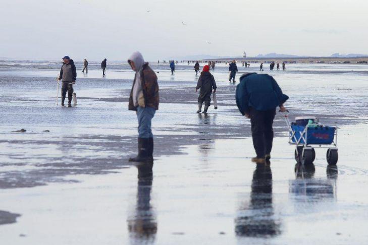 Still, the thrill was in the search, he said, even if the clams came a little further in between. The couple, digging among a growing audience of seagulls and setting sun, didn’t plan to surrender, not until Trisha also reached her limit. But with six clams, she was well on her way, with the goal to eventually make fritters and clam chowder, a meal surely to taste a little sweeter.