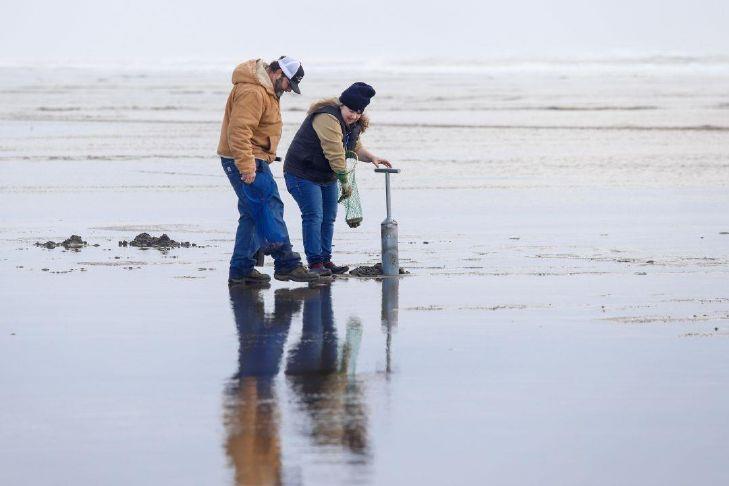 OCEAN PARK — Bill and Trisha Cooper, of Naches, were among the couples that spent the early Valentine’s Day evening digging razor clams north of the Bay Avenue approach, in Ocean Park.